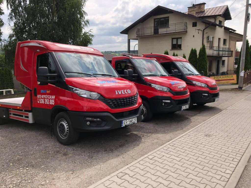 Oferujemy wynajem samochodów dostawczych, osobowych, 9-osobowych busów, lawet, autolawet oraz przyczep kempingowych – idealnych na wakacyjne wyprawy lub transport pojazdów.